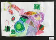 Project Description: Students learned about the artist Wassily Kandinsky and his special ability of synesthesia: he could hear colors and see sounds. Students created abstract art based on a variety of different music types using oil pastels and water color pencils. Students created their final artwork based on their favorite song. Some chose to include 3D elements such as wire and cut paper forms.